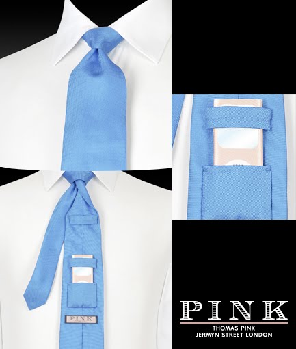 Ladies, if you are looking for the perfect present for your music obsessed boyfriend? Well Thomas Pink has the announce to your prayers this season. The Commuter Tie has finally hit the website. Basically Pink has taken a normal tie and put a subtle pocket on the reverse to hold your ipod in place while you travel or, for the more daring, while working. There is even an extra fabric loop to keep the wires out of sight and close to your body.