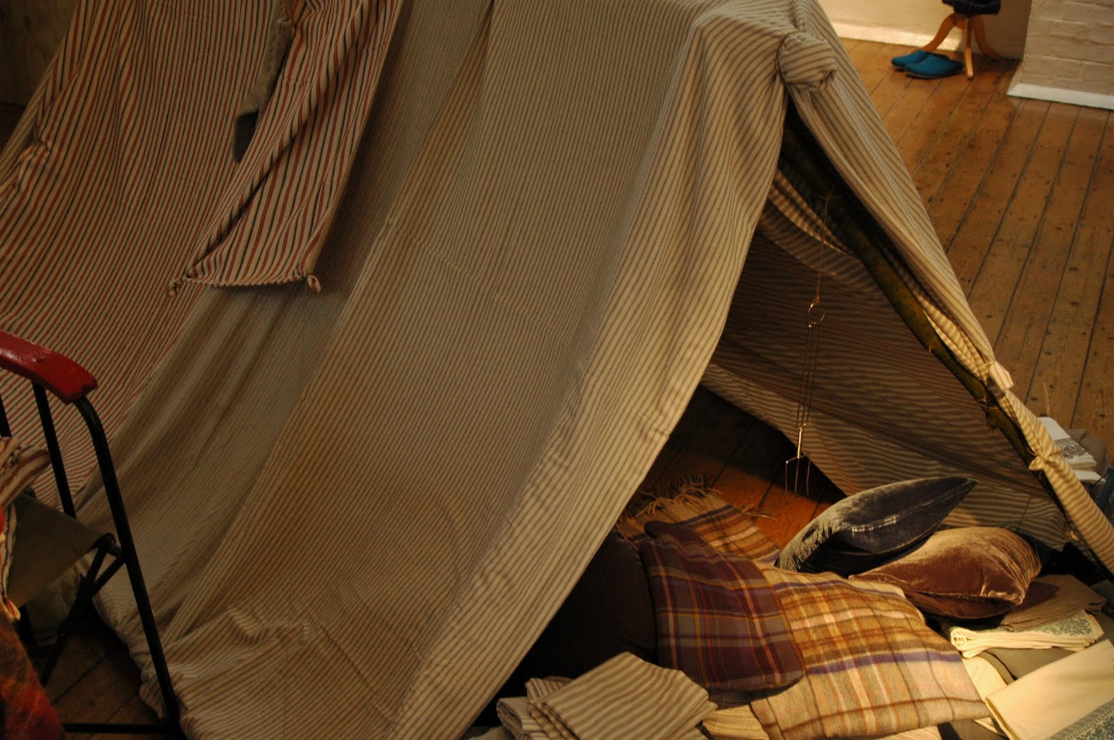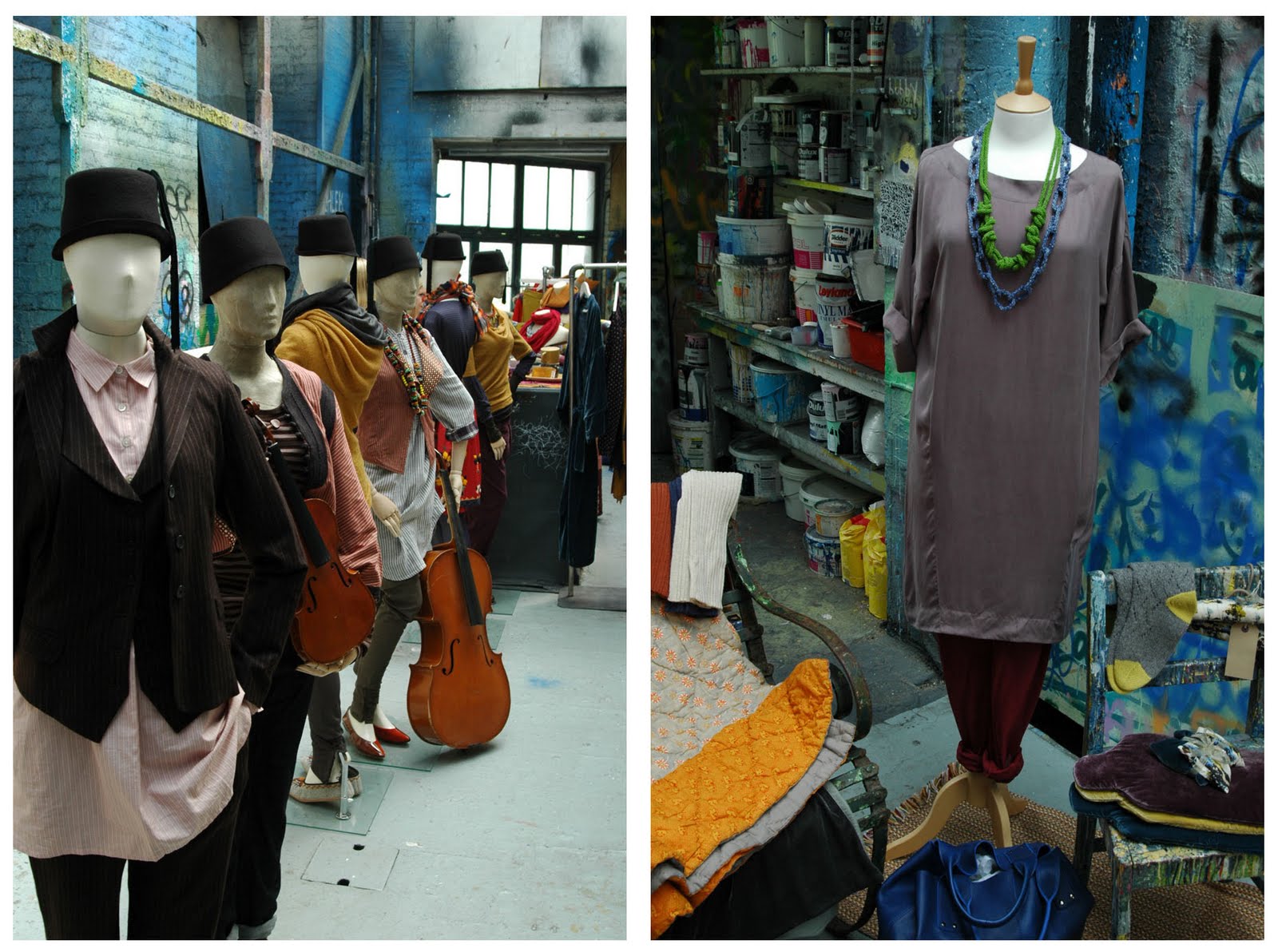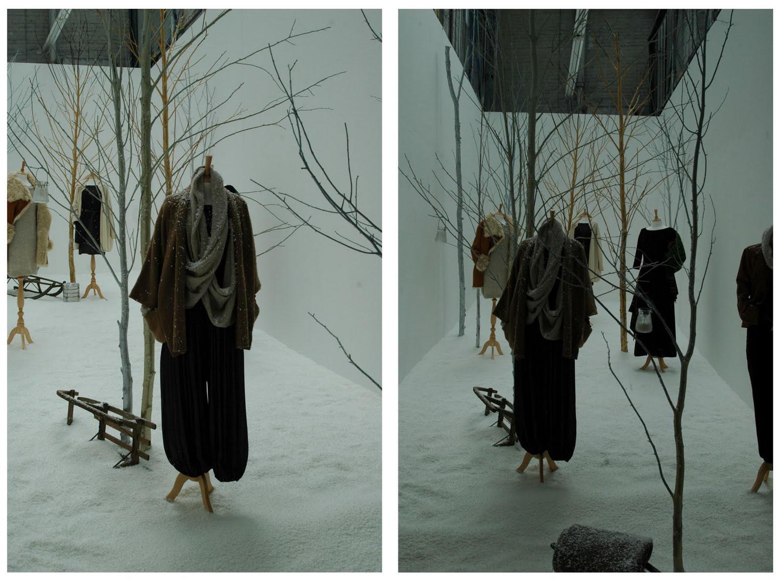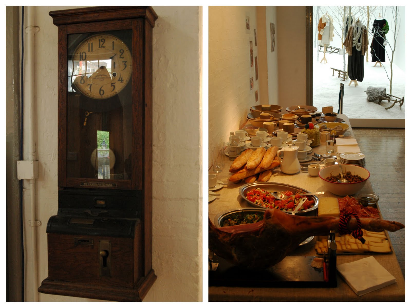 Yesterday was an absolutely manic day of press show after press show. Some are less exciting than others (the less exciting you won’t read about on this blog) and others are displays that will stay with you forever. The winner of this season’s most creative display, without a shadow of a doubt, goes to Toast. I was on the verge of crashing completely when I arrived on their doorstep. My feet hurt from running around town. My head hurt from too many flashes going off constantly at each venue and I was grumpy and hungry. Haha. Poor Toast had no idea what kind of train wreck they were getting through their front door! However, after walking through the front door my day instantly changed. I was greeted by a smiling PR who was genuinely excited to take me around the exhibition. I say “exhibition” and not “show” because this was not your average press day. This was an art exhibit. The view took place in a painter’s studio near Soho. Toast took over the entire space and transformed two floors into a clothing mecca. Only they didn’t just hang their clothes on racks and invite you to thumb through the wears. They created a real life winter atmosphere for you to experience complete with snow, teepees, graffiti covered painters’ walls and a mock-cabin to display the new menswear line. There was even a heavenly buffet of food for those stopping by for on the run lunches. Unfortunately I was in such a rush I didn’t get to indulge.