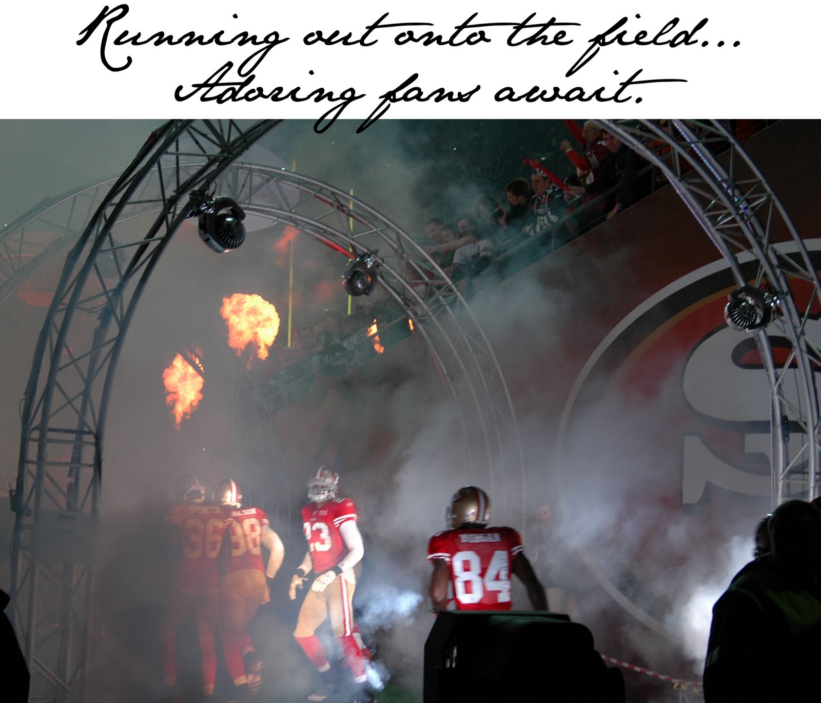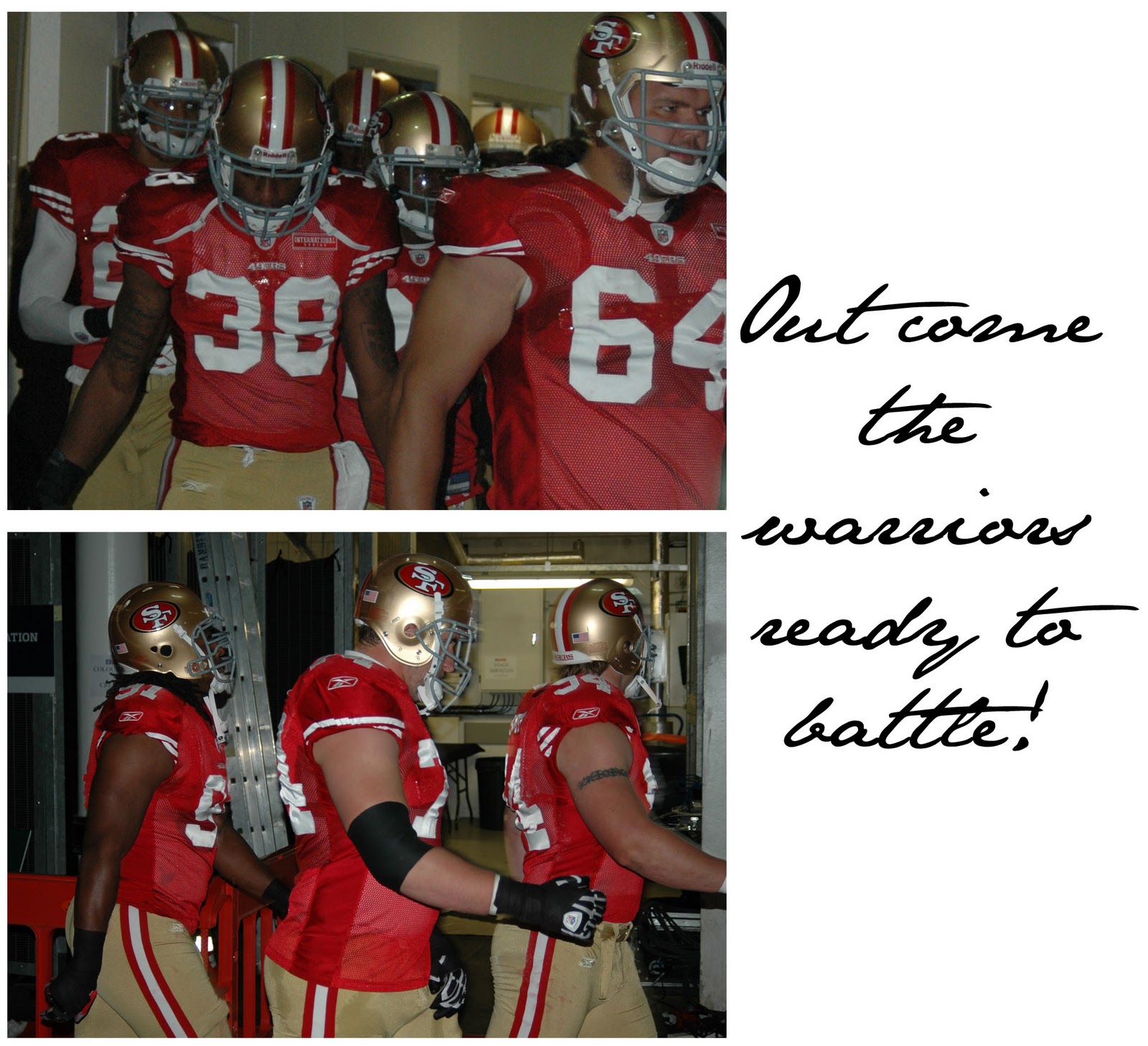 We started out in the player’s tunnel for the 49ers. The men rushed out from the locker room looking revved up and ready to kick some serious Denver Bootie!