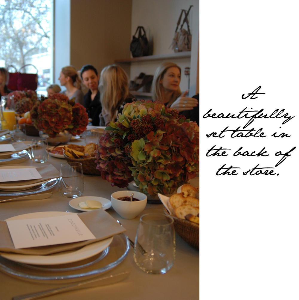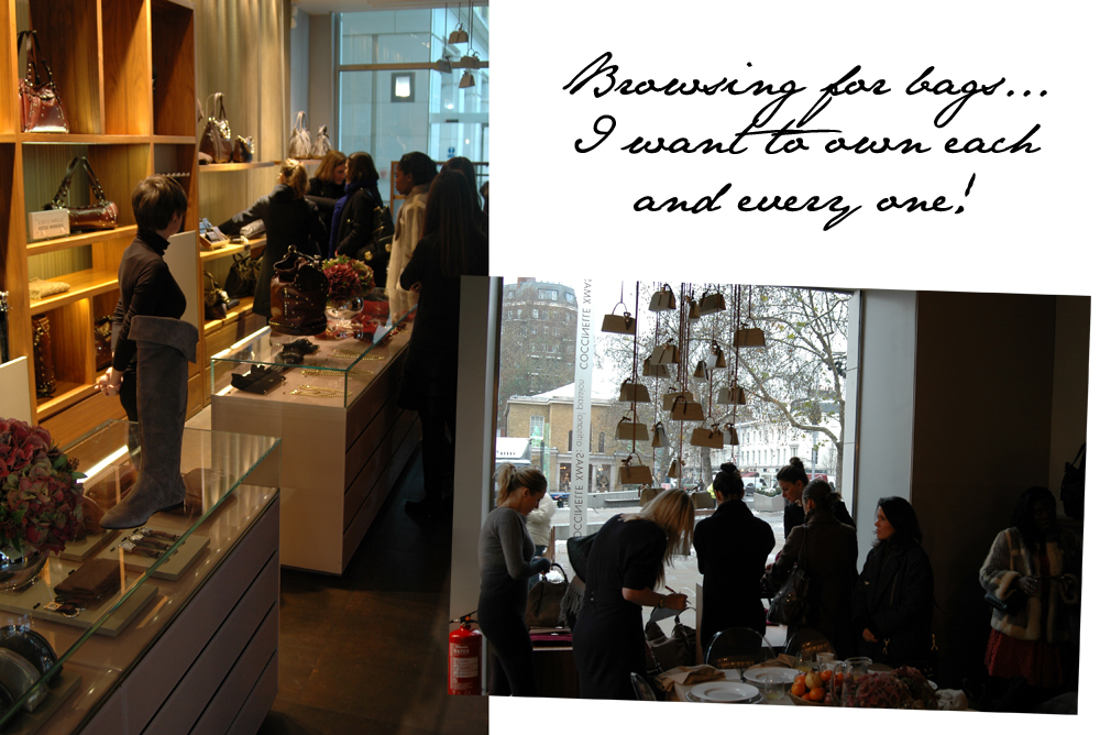 This morning I had the great honour of attending the Coccinelle breakfast in London. This was no ordinary press breakfast. The good people at Coccinelle had transformed their London store into a restaurant, complete with a coffee/tea bar in the front hall and a long perspex table set for eighteen at the back. Beautiful flowers decorated the space but I’ll be honest here, it was hard to focus on anything other than the amazing leather bags that surrounded us in store. I’m not sure if you’ve heard of Coccinelle before. If you have any Italian friends or have been to Italy, you should recognize the name instantly. This is a brand that has a cult like following on the continent. If I had to compare them to the USA and UK I would say they are like Coach to America and Mulberry to England. I know that’s some serious comparison. But I wouldn’t say it if it weren’t true. Quality and superior craftsmanship is recognizable in each piece on display. They are relatively new in the UK. In fact the only other European countries they exist in are Italy (of course) and Germany. They’ve been smart and picky about their marketplace.