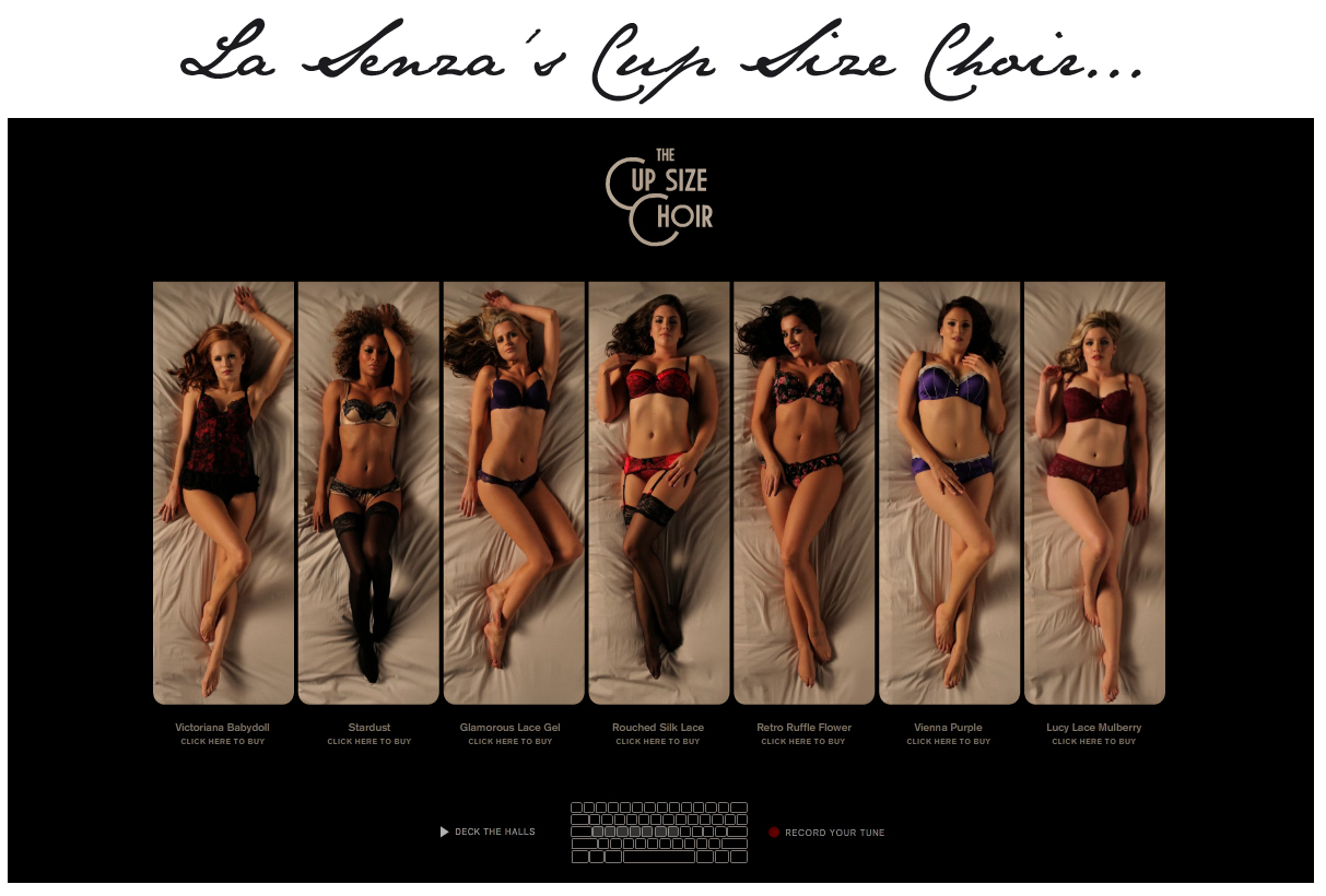 Are La Senza hoping to sell bras to women or men here? Because no woman I know would play the moans of a scantily clad choir on their keyboard and proceed to spend money with the company. The Cup Size Choir is a marketing ploy that will drive traffic to La Senza’s site and bring brand awareness, but I’m afraid it’s sending the wrong message. If you’re a male reader, you’ll enjoy this website. If you’re female, visit the site and throw tomatoes at your screen!