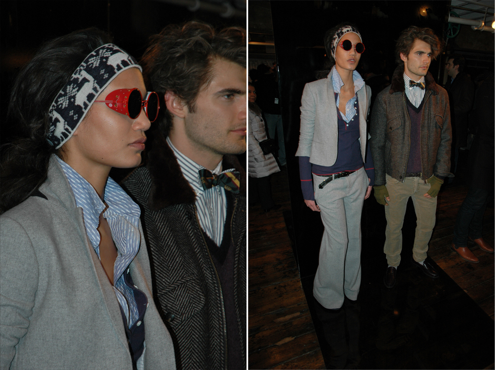 This is Michael Bastian’s second season working with Gant. His first collection, for Spring Summer 2011, is dropping in stores at the end of this month so keep a look out. For Fall Winter, Michael says he “envisioned a couple that put their city life behind them, and escaped to a small cabin in the middle of the forest, blanketed in snow and isolated from the rest of the world.” Bastian achieved this “vibe” with alpaca knitted sweaters, skinny cargos, corduroy anoraks, faux fur skirts, silk dresses, denim pin-stripped blazers and plaid button down shirts – all layered to perfection for the presentation. This is a show that commands respect not only for the obvious genius behind each and every piece but also for the way in which each look was styled.