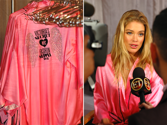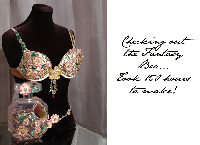 The models were all dressed in their pink bedazzled robes matched with pink flip flops. It’s a good thing it was warm inside as I doubt the flip flops would have held up well outside in the snow that was falling. It must be said that the Victoria’s Secret models are some of the most professional that I have ever encountered. Each and every model turned this way and that as they were primped and prodded by their transformation teams. They simultaneously gave interviews to journalists, smiled for dozens of photographers surrounding them and navigated giant curling irons that were circling their heads. That, folks, is the fine art of being a supermodel and these ladies have definitely had some good training and years of practice to perfect this little dance.