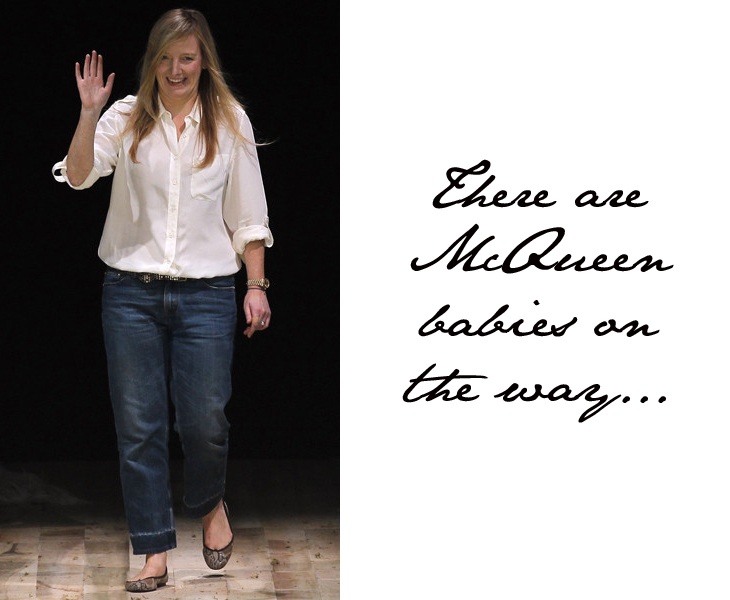 A huge, massive, gigantic congratulations to Sarah Burton this morning. It has been announced that the Alexander McQueen designer is pregnant with twins. Immediately you have to wonder if she and Kate Middleton will be calling and exchanging tips, right? (As we certainly know Kate Middleton won’t be calling Kim Kardashian for pregnancy fashion tips.)