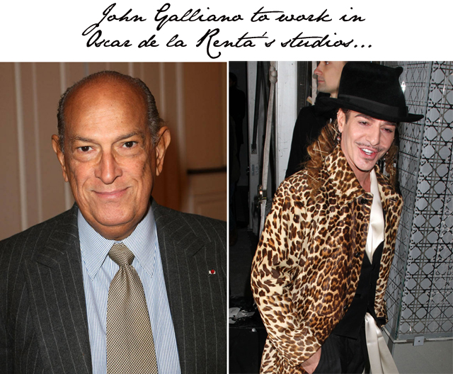Oscar de la Renta has announced that John Galliano will work in his studios leading up to fashion week. What he will be doing exactly is not yet clear. However, Oscar de la Renta is the first in the fashion world to stand up publicly and support Galliano’s efforts towards a return to fashion. That for now, folks, is quite enough.