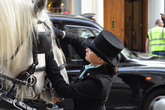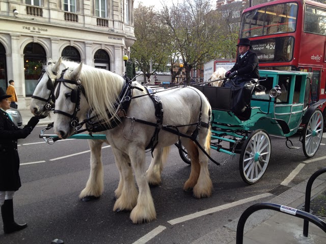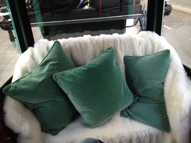 However, FFG had the best seat in the house for it all. We were invited on the day to ride in the carriage as it made its way from Old Bond Street to Sloane Square and from there to Harrods. The carriage itself was full of fluffy faux fur throws and plush Tiffany blue pillows. We nestled in, took out our cameras and prepared for the ride.