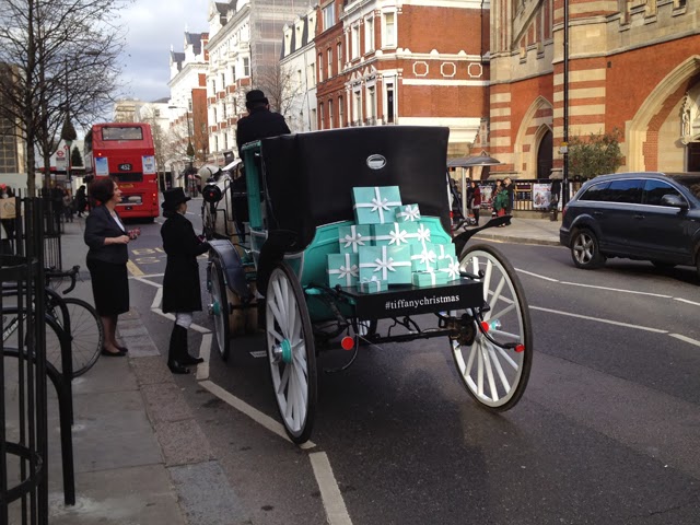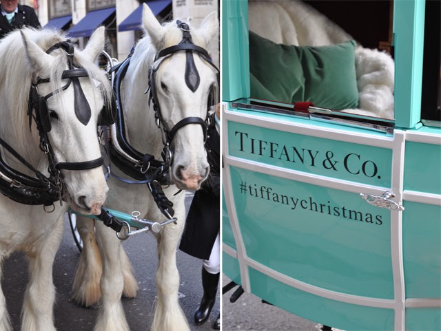If you were out and about in London on Friday afternoon, you may have spotted a rather unexpected horse drawn carriage making it’s way through the city streets. Tiffany & Co. were bringing holiday cheer to London’s busiest shopping locations in the form of a beautiful carriage, that can only be compared to the likes that of a Cinderella story. The trademark Tiffany blue was used not only on the body of the carriage but was also found detailed on the wheels, the horse’s reigns and even the drivers’ ensembles. It was a spectacular sight to behold.