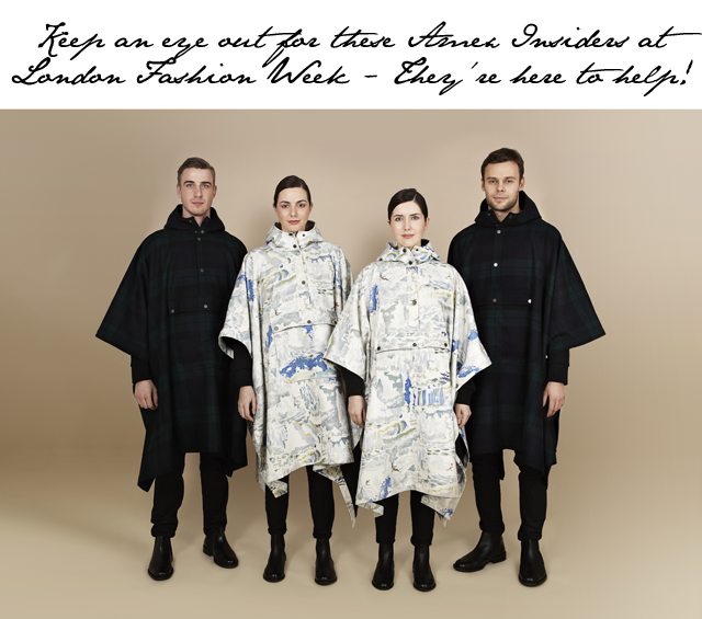 Oh, and one other thing. There’s actually a competition happening on Twitter to win the Christopher Raeburn cape! All visitors to LFW need to do is share their favourite look on Twitter or Instagram with the hash tag #amexstyle. Yup, that’s it. Share as many times as you want and the winner will be selected by an independent judge after LFW is officially finished.