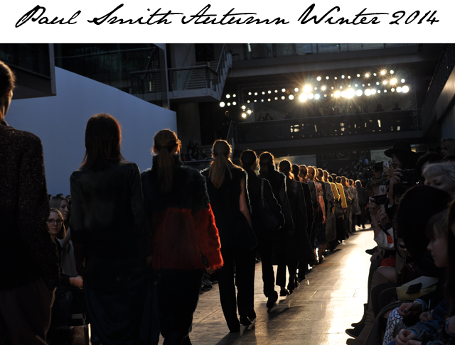 At the end of the Paul Smith show this evening, Sir Paul Smith walked the entire length of the catwalk to wave hello to friends, family and supporters. When he reached the exit, he waited and clapped as each one of his runway models walked past. When the last model approached to exit the runway, he simply ducked his head in praise and followed her out. When was the last time you saw a designer stand publicly and applaud his models in front of an entire room of people? There is a reason that Londoners call Paul Smith the nicest man in fashion and this is just a small slice of the reason why.
