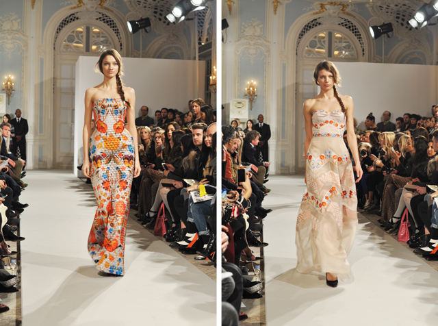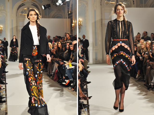 As each catwalk model took to the runway today at Temperley London, the same idea kept springing to mind – “the textures of Temperley.” Alice Temperley is truly a texture DJ. She mixes mediums masterfully and the end result is a collection that takes the crowd’s breath away. Honestly, isn’t that the work of a DJ of sorts, to make you remember a moment, your life set to music? Temperley makes music with her beautiful pieces and truly, if we had our choice, this would be one of the only soundtracks to our lives for the season ahead. Ok, maybe we’re going a bit far with that metaphor. All in, what we’re trying to say here is that this is a monumental collection that features every texture, shape, length, cut and layer that you could imagine. There is truly something for everyone. But, keeping that in mind, here are a few of our favourites. {Temperley London}