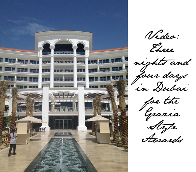 Here’s a look at four days and three nights in Dubai, from the beautiful accommodations at the Waldorf Astoria, Dubai, to the 2014 Grazia Style Awards where I was a judge and a presenter. I do hope you enjoy.