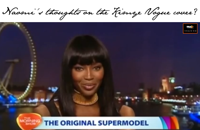 Alright, we’re thinking this will be the last thing we write about the Kim Kardashian & Kanye West cover. It was just too good not to share. Naomi Campbell recently did a live interview with an Australian Morning TV show and naturally the topic of Vogue weaved its way into the conversation.
