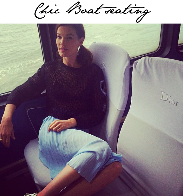 Social media went mad with pictures of the ferry, the seats, the handsome men dressed as sailors who were serving champagne and the show itself. Basically, this whole set was a social heaven. Then came the front row for Dior Cruise 2015. Naturally, the top style bloggers were all present. They sat alongside celebs such as Rihanna, a pregnant Lee Lee Sobieski, Marion Cotillard and Olivia Palermo, and all came clutching a lovely Dior bag in hand.