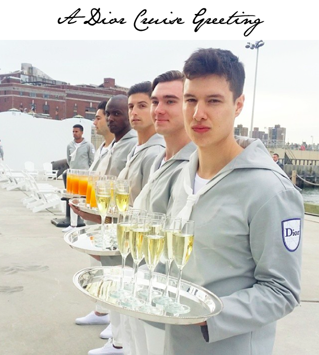 First of all, it must be said that we’re talking about the Dior Cruise 2015 show here, as opposed to fashion week, which takes place twice a year in Manhattan. The craziness level is dialed down a notch and people are allowed to move at a much more leisurely pace. Keeping that in mind, it didn’t stop Dior from chartering their own ferry, complete with embroidered seats, to transport guests to and from the runway.