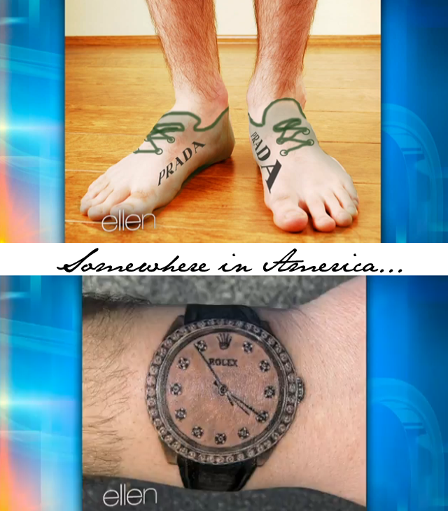 So imagine you really love your Prada shoes? That’s not too hard to imagine for most of us if we’re being honest. But would you love them so much that you’d have them tattooed on your body? This is the question Americans are asking themselves today after Ellen Degeneres shared some rather alarming fashion tattoo trends of her show this afternoon.