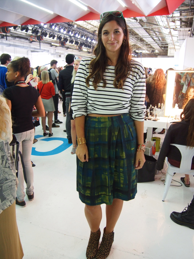 | Day One London Fashion Week: Uniqlo Striped Tee £12.99, Max Mara Skirt, Nine West Boots |