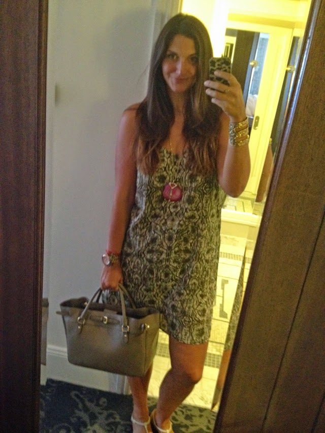 | Arriving in London from New York: Rebecca Taylor Dress, Kohls Feather Cuff $14, Michael Kors Watch, Vintage Ray-Ban Sunglasses, Tj Maxx Leather Bag, Dolce Vita Sandal $29.94 from DSW |
