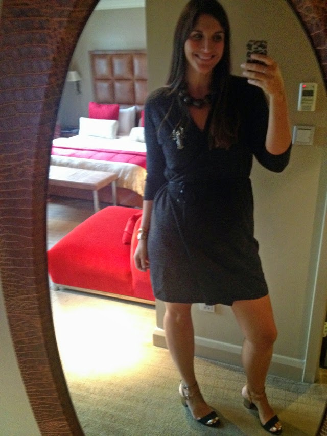 | Last day in NYC: Joe Fresh Dress $29, Vintage Pendant Necklace and gold cuff, Lauren by Ralph Lauren bag |