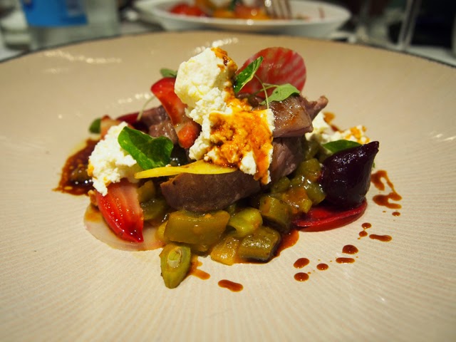 Now about this restaurant at Cannizaro House. Well, I guess the only word to start with is “wow.” The food really was quite impressive, from the amuse bouche to the final bit of a fig based dessert. I hadn’t really “expected” anything in particular as I had done zero research on what exactly the cuisine was, but I was pleasantly surprised by the presentation, portions and tasty surprises with every bite. Truly, there were combination of ingredients I had never even imagined. To start, I sampled oysters (simple) and scallops. The scallops were served on shells and atop a bed of salted green beans. Both seafood starters tasted as if they could have jumped straight from the sea and onto my table. You could quite literally taste the ocean. Between, and during, courses, I enjoyed a beautiful bottle of rose sancerre. Admittedly, everything tastes better after a couple of glasses of wine, but this food did seem to just get better with every new dish arriving on my table. The next course was lamb. To be exact, it was “charred middle neck lamb fillet, runner bean chutney, beets and South London feta.” This is never a combination I would normally go for, or had ever heard of, so naturally I had to order it. My curiosity was rewarded with a tastebud explosion.