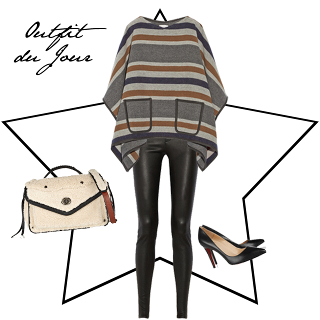 MiH Jeans Poncho £325, Helmut Lang Stretch Leather Trousers £745, Coach Shearling Bag £1,195, Christian Louboutin Pigalle 100 £425