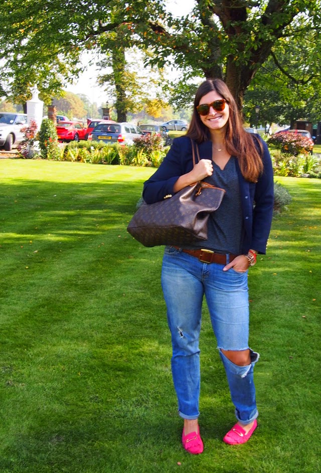This was a super last minute share. As I’m living out of a suitcase, yes still, I am scraping the bottom of the barrel these days. My nephew actually asked me if I had been attacked by zombies – due to the giant rip in the knee. All Ralph Lauren there, apart from the bag (Louis Vuitton Neverfull) and the shoes (Tod’s).