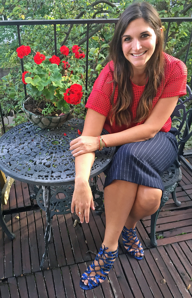 I had to go stripes from head to toe for at least one look out of seven, you guys. I’m obsessed. This is a Gap skirt knit skirt (obsessed) with a finer striped top. Paired with a pair of colour pop heels and a great classic clutch from Rebecca Minkoff and I’m ready to rumble. It must be mentioned that I’ve spiced up the colourful clutch with a Anya Hindmarch leather thumbs up sticker and some furry balls from Hockley.