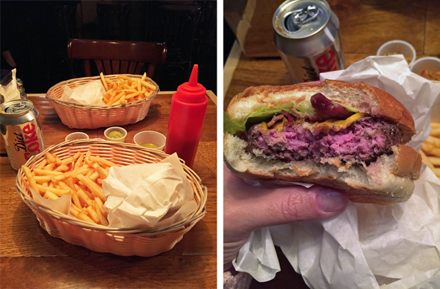We took our seats, chatting and looking around the tiny place, as we waited for our food to be delivered to the table. You leave your name at the till and they come find you with your food when it’s ready – fair enough. The atmosphere was friendly and chilled to the max. This is definitely the ideal burger venue vibe. You’re relaxed and taking it all in as your mouth starts to water thinking of a delicious burger winging its way to you.