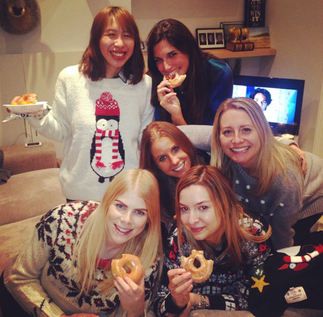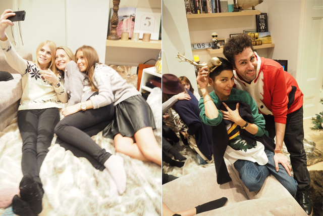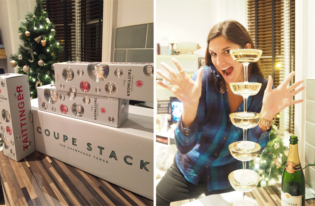 And when not lounging, we were definitely entertaining ourselves in various ways. Naturally, the ten of us could talk up a storm. I’m not so sure my neighbors were all too happy about a bunch of loud mouthed fashionistas coming together in one place. We are not quiet people, that is for sure. Then there were the shrieks and screams as we emptied a bottle of champagne into the Coupe Stack for the first time (brand new to the marketplace… you have to have one of these… plus, it’s a good friend that’s just launched it). There was also Christmas music playing in the background, Love Actually on mute on the TV and regular laughter from various catch-up sessions. In short, this is the sort of noise that is just pure happiness.