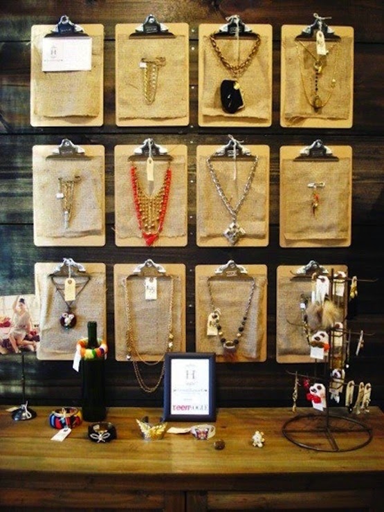 4. Use clipboards to display statement necklaces.