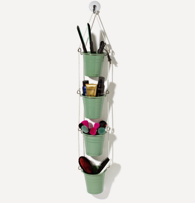 2. Use buckets and string to creative original storage for beauty in the bathroom.