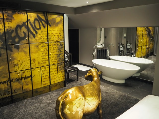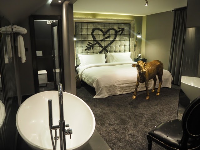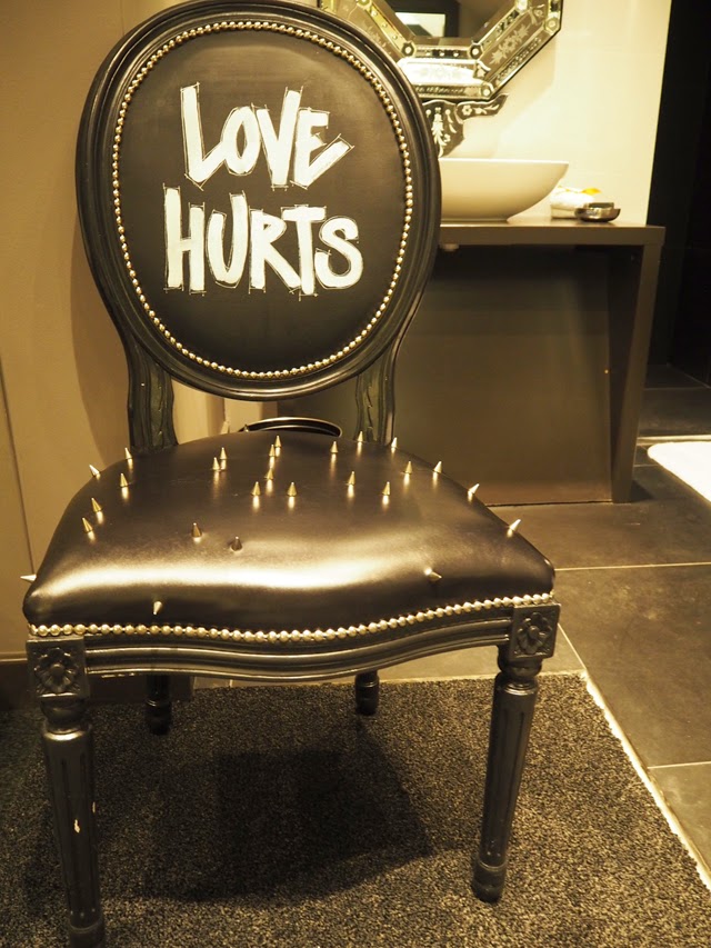 I finally arrive at the room to find I’m booked into the Jimmie Martin penthouse suite while in residence. I must admit I was secretly hoping to get one of the basement level rooms with the plunge pools, but was equally amused to find myself in a suite filled with oddities such as a studded-seat chair. Let’s just say this was more a room about visual enjoyment than complete comfort. As I moved throughout the space I found myself confronted with a golden calf, an in-room bathtub and a lamp made out of a mannequin. Oh, and that’s just the start. Of course there were the trademark Jimmie Martin chairs, including my favourite sausage dog duo, and the aforementioned “love hurts” studded moment. The only “normal” area of the suite was outside where the balcony was relatively decor free and peaceful. I have been told, however, that the big beautiful balcony becomes an outdoor movie theatre in the summer, which is just absolutely the coolest thing going here.