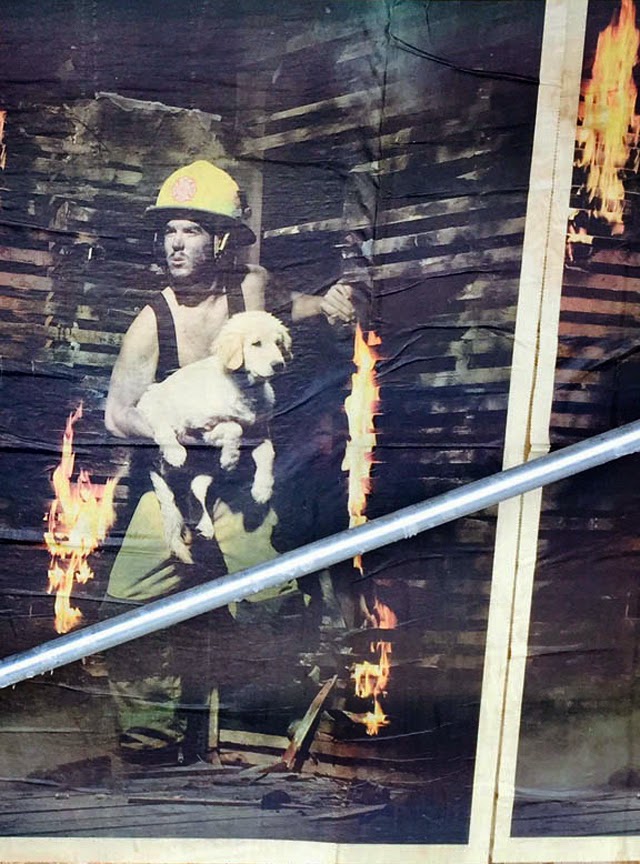 There, in front of me on the main drag, was a fireman. He wasn’t just any fireman, have you. This fireman was shirtless and he was saving a golden retriever puppy from a burning building. Be steal my beating heart. Of course this was all just a poster, presumably put together to attract just the attention I was giving it. Frustratingly, there was no further information. Who was the artist behind this creation, who’s the man modelling and does that adorable golden need a home? So many questions that need answering and there are no answers anywhere.