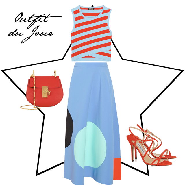 Emily 24th February outfit du jour Outfit du Jour: Fit to be Striped DKNY Cropped Top, Roksanda Illincic Skirt, Chloe Cross Body Bag, Jimmy Choo Sandals