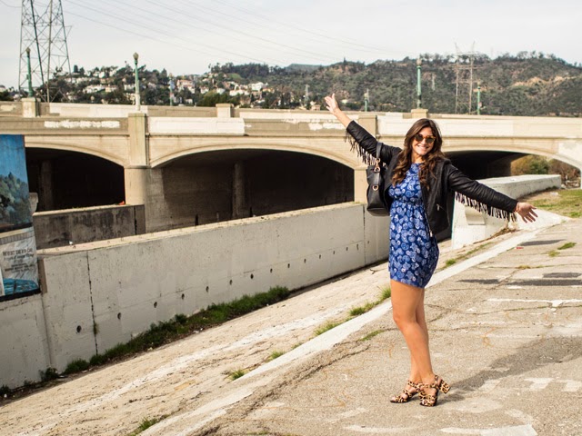 Here’s what I’ll never ever get over in LA – the light. It’s insanely beautiful here and I’m hoping the pictures accurately reflect that glow. I feel like your whole body reacts to the weather. You feel healthier, your skin glows a little bit more and your hair shines in a whole new light. And the colours… oh the colours. Even clothes seem to look better here. And speaking of clothes… in the dead of a London winter I was wearing bare legs and a fabulous fringe jacket while walking alongside the Los Angeles river. So, this is what happiness looks like. It’s a mix of a few favourite things, both high street and high end, mixed with my favourite place.