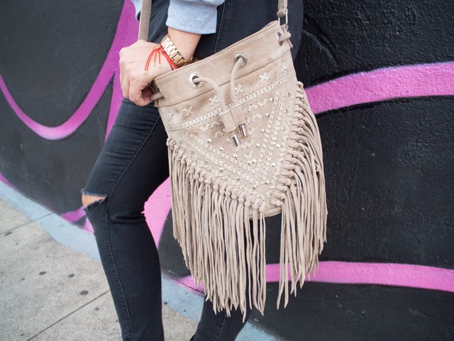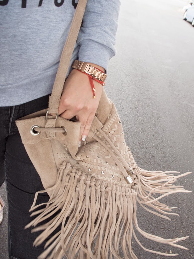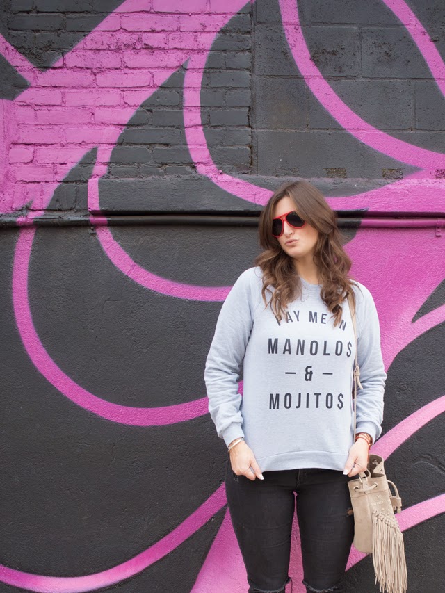 What I’m Wearing: Off Dutee Manolo & Mojitos Sweatshirt, Old Navy Rockstar Distressed Jeans, Next Fringe Bag, Next Snakeskin Flats