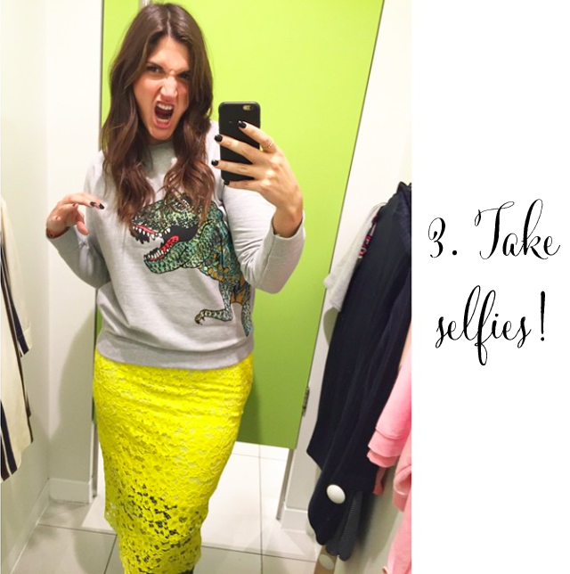 Once you get on Oxford Street and start slipping into the dressing rooms, take selfies. Ok admittedly these will not be for sharing with anyone else. Well, not for sharing unless it’s a slamming good selfie with a dinosaur or something (taken in Topshop on Oxford Street). These will be great for you to see exactly how you look in the item from a camera’s perspective. Will also be good to keep record of what you love if you are wavering.