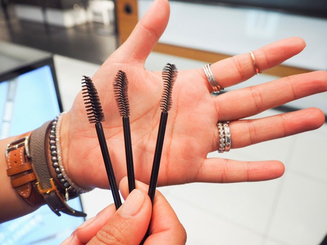 I went into Harvey Nichols this afternoon and sat my bottom on a perspex chair while famed makeup guru Kay Montano set to defining my mascara needs. She asked me about my wildest eyebatting dreams, my daily regime for makeup and even let me run a few brushes through my not so fabulous natural lashes to test how comfortable I was with application. After me more or less proclaiming I wanted RuPaul like eyelashes, Kay and Nina set to finding my perfect formula that would match my chosen brush. On one eye we tried a volumizing tube and the other a fibre enhanced formula. In the end, out of 100 combinations, my mascara was born, sealed, initialed and handed over to find a new home in the beauty bible of FFG.