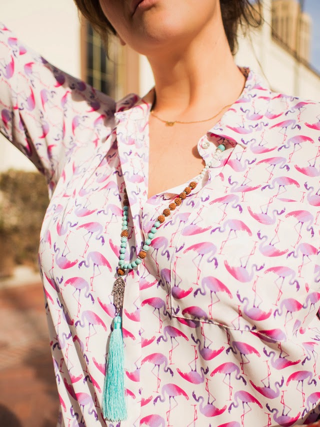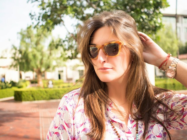 A few weeks ago I was scrambling to pack for a quick trip to Los Angeles. I needed to run to the pharmacy to pick up some essentials and I happened to be walking past Marks & Spencer when I spotted this shirt in the window. I loved the look of the print from far away, but when I came closer and realized I was starring at flamingos on a button down shirt, I couldn’t get my legs to move fast enough into the store to make the purchase.
