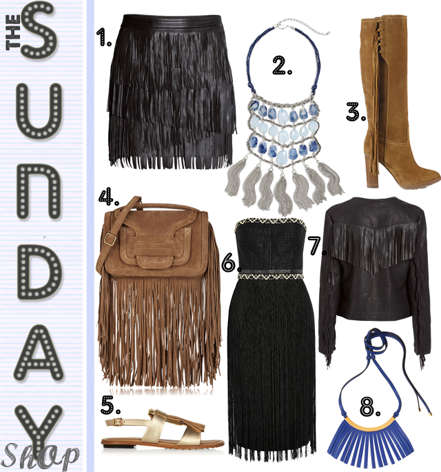 5. Tod’s Metallic fringe sandals 6. Tamara Mellon Dress 7. Next Fringe Jacket