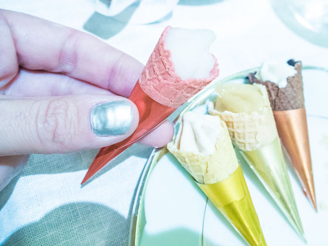 miniature ice cream cones. There are surprises to be discovered here, so I won’t
