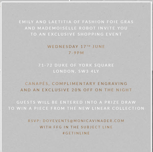 Good morning one and all! So I’m very excited to announce that next week I’m cohosting an exclusive event at Monica Vinader in Chelsea. The lovely ladies over at Monica Vinader have given me a select number of RSVPs for readers to attend and I would absolutely love to see you guys there! It’s a night all about jewellery, lovely food, drinks and a great discount.