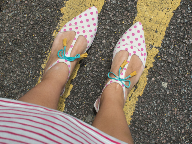 A couple of weeks ago Boden asked me to showcase how I would wear their fabulous Alice flats. My initial response – I’d wear them with everything. Well, that doesn’t make for the easiest of style posts, now does it? So, I narrowed it down to one way to wear and it involved a lot of print clashing. We have stripes, florals and polka dots, all competing for attention and I’m loving every blooming minute of it! Can’t you tell? Smiles all around, folks! And if you really love the flats, check out The Boden Blog to see how two other bloggers styled theirs.