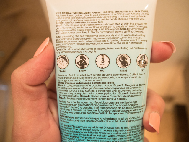 This is just a reminder that the St. Tropez in Shower Tanning Lotion is slippery, just like any other lotion. If you apply and lotion falls on the shower floor, this can be dangerous. I know because I managed to do my first ever split as a result. Obviously my lunge activity is now done after I shower off the floor post application. You can never be too careful. But honestly, it’s 180 seconds you can do anything with – sing, draft short stories in your mind or even scrub the tub if you’re so inclined.