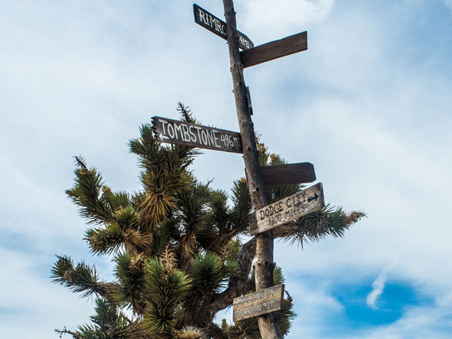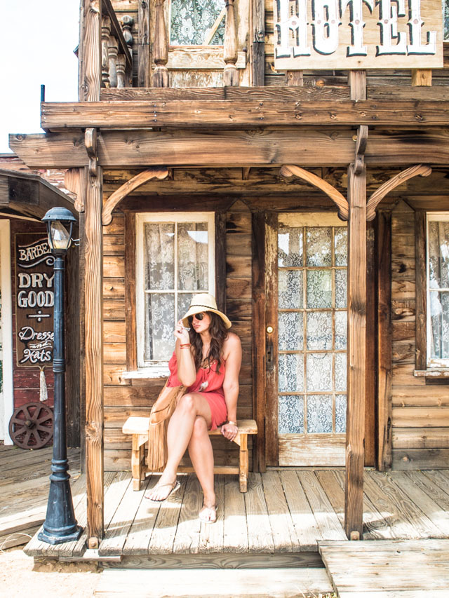 Pioneertown has been around since the 1940s, and has historically been used as a film set, and doubled as homes for actors filming on location. It is eery to say the least. When we arrived there were a few tourists snapping selfies down the main street. When they cleared, we had the place to ourselves. We visited the jail, the hotel, the saddle shop and the general mercantile. No one seemed home (as apparently people do live here – there’s a population of 350 in the area) and we were left to watch as the wind kicked sand up around our feet. It felt as if John Wayne would come strolling into town on his tall horse at any moment. Alas, all that came into view was an old beat up Honda Minivan. Fifteen minutes later we had seen it all and reloaded back into our car to leave Pioneertown for another day – perhaps a day when we had attire that fit the feel of the place. Our bright sundresses seemed so far from appropriate it was ridiculous.