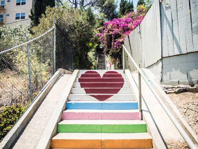 There exists a magical set of stairs in Silver Lake, Los Angeles. These stairs have heart, literally. They are also stairs that are begging to be sought out, discovered if you will, in a creative mecca in Los Angeles. I’m not the first to photograph here, and I’ll certainly not be the last. But, when you discover these stairs for the first time, your heart quite literally jumps from your chest. It’s a beautiful sight and usually one that is completely empty. It’s tranquil and uplifting and you’ll find messages of love at both the top and bottom of the stairs. This is what I love about Los Angeles – you never know what you’ll find around any given corner of the city. It’s a place open for exploration and willing and ready with surprises.