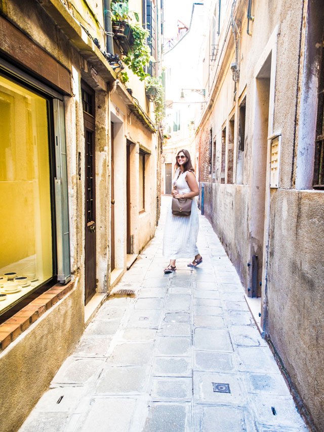 In all honesty though, folks, this dress is the easiest thing on earth to wear. It has a deep v-neck, so for my strolls in Venice I paired the dress with a nude colored bralet, that looked a part of the ensemble, and layered several necklaces to keep things “polite.” Paired with the new Louis Vuitton Volta shoulder bag and some simple croc sandals, this was a look that saw me through a rather hot and muggy day in Venice with little “outfit distraction.” You know what I mean by that, right? Outfit distraction is when you wear one thing out for a day on the town and half way through your day you realize this was not the right outfit to wear at all, for whatever reason, and your day officially has a black cloud over it. Not the case here, oh no!