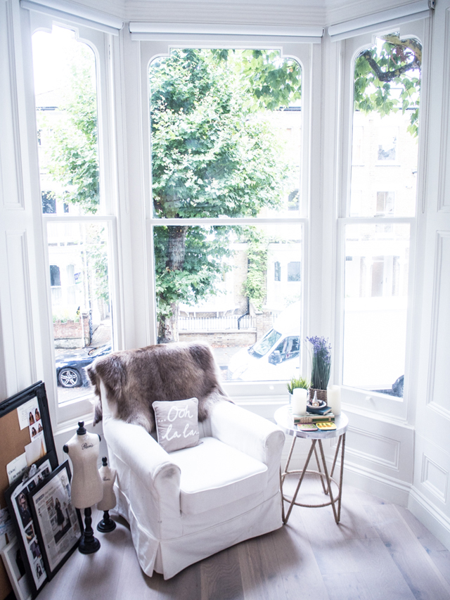 Now, a little note about the bedroom. Yeah, it’s small. It’s tiny. There’s barely enough room to step out of the bed between the mattress and the wall. But, this is London. What do you expect? Funnily enough, I love the smallness of the room. It’s like sleeping in a cubby hole and is incredibly comforting. It’s why I chose to make the smaller room the one I slept in. I mean really all you’re doing is sleeping in there. So I leave the bigger room for changing, contemplation and creativity. These things need space to breathe, no?!