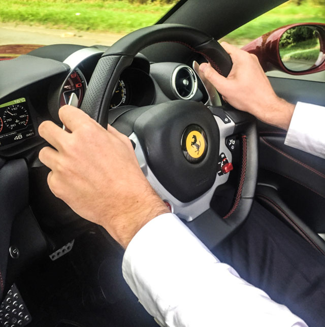 So, on Friday afternoon we made the journey over to Ferrari to pick up our ride for the weekend. Now, ladies and gents, I am a woman that’s been brought up with three brothers in racing country – think Tom Cruise and Days of Thunder, which was filmed in my hometown. I am used to speed. In fact, I live for a little fast action. However, nothing can prepare you for the moment when the gentleman in your life decides he is going to push the Ferrari out there in the first sixty seconds you have it in your possession. Oh yeah, that happened. Zero to sixty? Try zero to head-against-the-headrest with no concept of what speed you’re doing. I wasn’t ready for that. I wasn’t ready for the incredible power of a Ferrari engine. Perhaps it was the comfortable ride that set me off. This wasn’t the supercar I’m used to. Aren’t they supposed to be uncomfortable and more about speed than luxury relaxation? Not this bad boy. Oh no. The Ferrari California T is at its most comfortable when travelling at 120mph. If you go any slower it appears to almost be mad at you – or at least the sound of the engine would suggest as much. This is now my cruiser of choice. Only problem is that I’m sure a police officer won’t go for the excuse of “Honestly, I could have sworn I was only going 65,” when I get pulled over and given a ginormous speeding ticket.