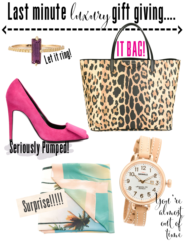 While I could offer a number of different suggestions of places to shop for the occasion, I had such a good experience with one online retailer this month, that I thought I’d stick with what works. A few weeks ago I partnered with Farfetch to showcase three ways to wear a Charlotte Simone scarf. As I’m never home to accept packages, I used the in-store delivery option Farfetch offers with online purchases. Basically you can order anything and have it delivered to your local Farfetch affiliated boutique for pickup. Couldn’t have been easier, and so I’m thinking it’s perfectly man-friendly when it comes to gifting. It’s a cinch and the selection online with Farfetch is above and beyond what’s needed to make dreams come home this Christmas. Now, I realize the world of online luxury can sometimes seem daunting, so I’ve put together my gift guide for the perfect last minute luxury gift. TODAY IS THE LAST DAY TO ORDER, if you want your gifts to arrive on time…. so get clicking! For Londoners – check out the same day delivery option! Now, presenting, last minute luxuries every woman will love this Christmas (and, perhaps most importantly, all the categories of gifts I’m hoping to find underneath my Christmas tree this year)!