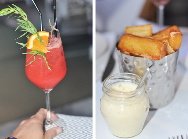 This is the Summer Terrace at Tredwell’s by Marcus Wareing, in the heart of Soho. Blue and white nautical vibes reign supreme, with the goose being the main name of the game here. Yes, the whole French Riviera scene is sponsored by Grey Goose and the cocktails reflect a rather optimistic view of sweet summer nights ahead. Feeling peckish? There are plenty of delish nibbles on offer as well. From fried chicken to triple cooked chips, you’ll find something here that will peak your interest.
